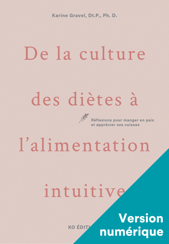 - Gravel, Karine. De la culture des diètes à l’alimentation intuitive : réflexions pour manger en paix et apprécier ses cuisses. Montréal (Québec), KO éditions, 2021.